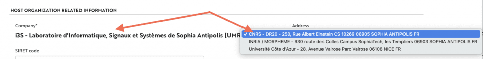 - In the case of an internship outside iBV, IPMC, INRAE, IRCAN, C3M, you will need to create your host organization profile and provide its Name, Address, and SIRET number. Connect to link: https://link.univ-cotedazur.fr/