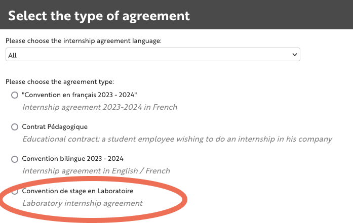 Then select "laboratory internship agreement". Be careful not to choose the wrong model, or you will have to redo the entire procedure.