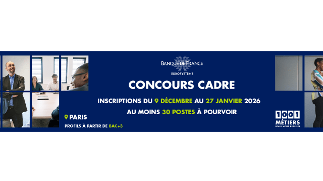 CONCOURS CADRE BANQUE DE FRANCE 2026 - Inscriptions du 9 décembre 2025 au 27 janvier 2026 -