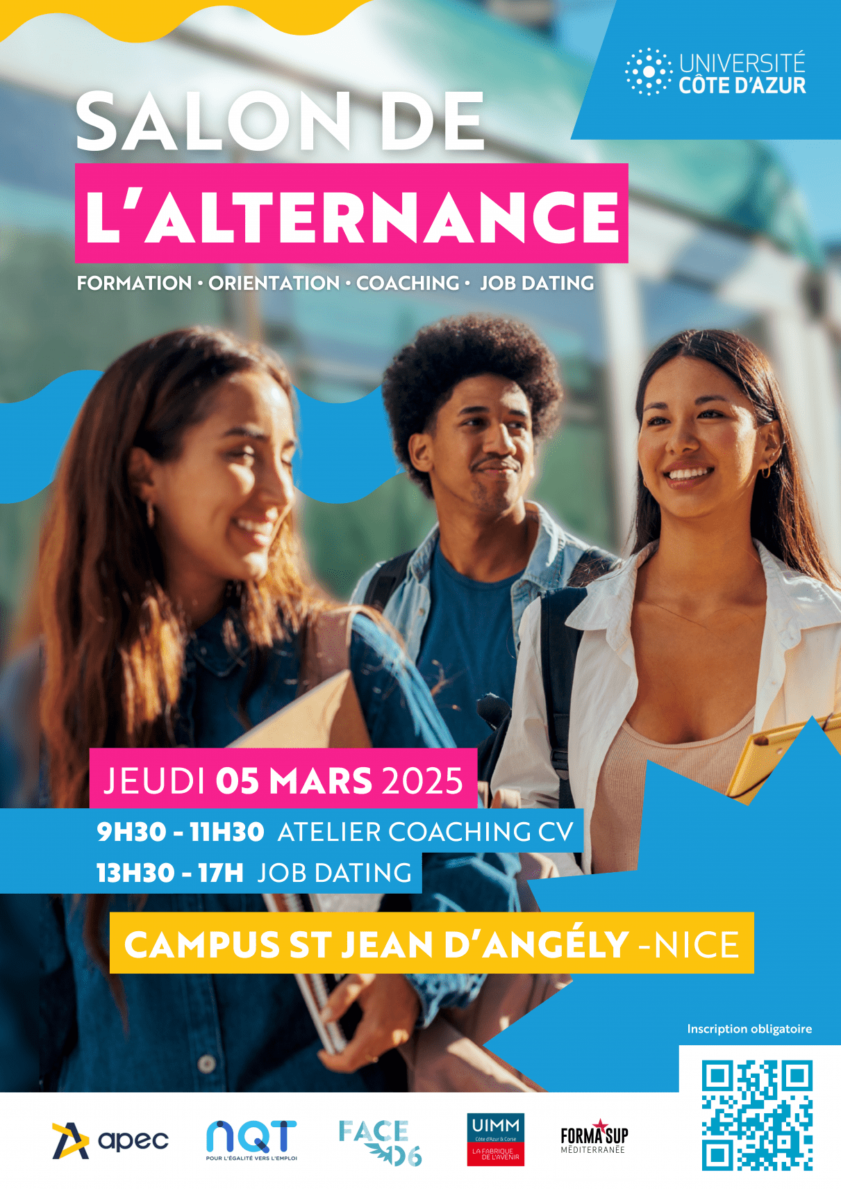 Université Côte d'Azur organise le jeudi 5 mars 2026 une journée qui vous permettra de rencontrer nos responsables de formation et les étudiants en recherche d'un terrain d'apprentissage.