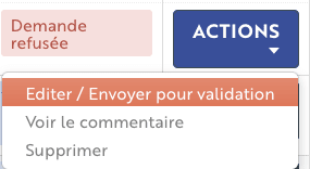 Dès que votre avenant est refusé vous pourrez le modifier, l'enregistrer en mode brouillon, l'envoyer pour validation ou tout simplement supprimer cet avenant.