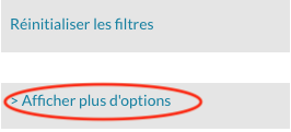 Si vous souhaitez voir exclusivement les conventions dont vous êtes le tuteur en laboratoire, il vous faut au préalable "afficher plus d'options". Puis il vous suffit d'entrer votre nom de famille pour effectuer un filtre dédié.